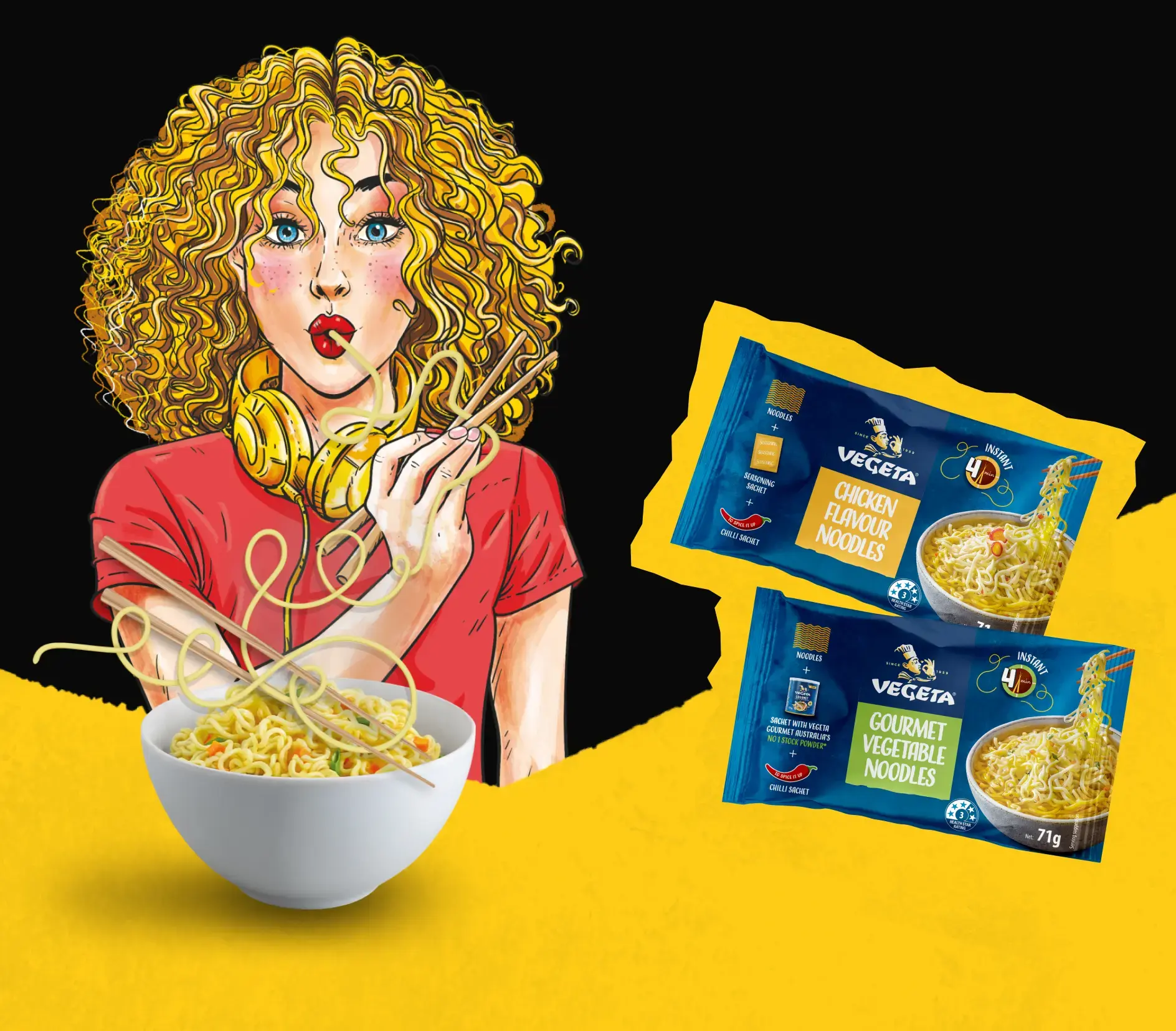 Blurb: The Vegeta Instant Noodles range offers a selection of classic, savoury flavours made for quick and easy meals. Convenient to prepare and satisfying. These noodle packets are perfect for everyday lunches, simple dinners, or anytime you’re after a warm and comforting bowl. Enjoy them on their own or customise with your favourite toppings for an easy, versatile meal option.