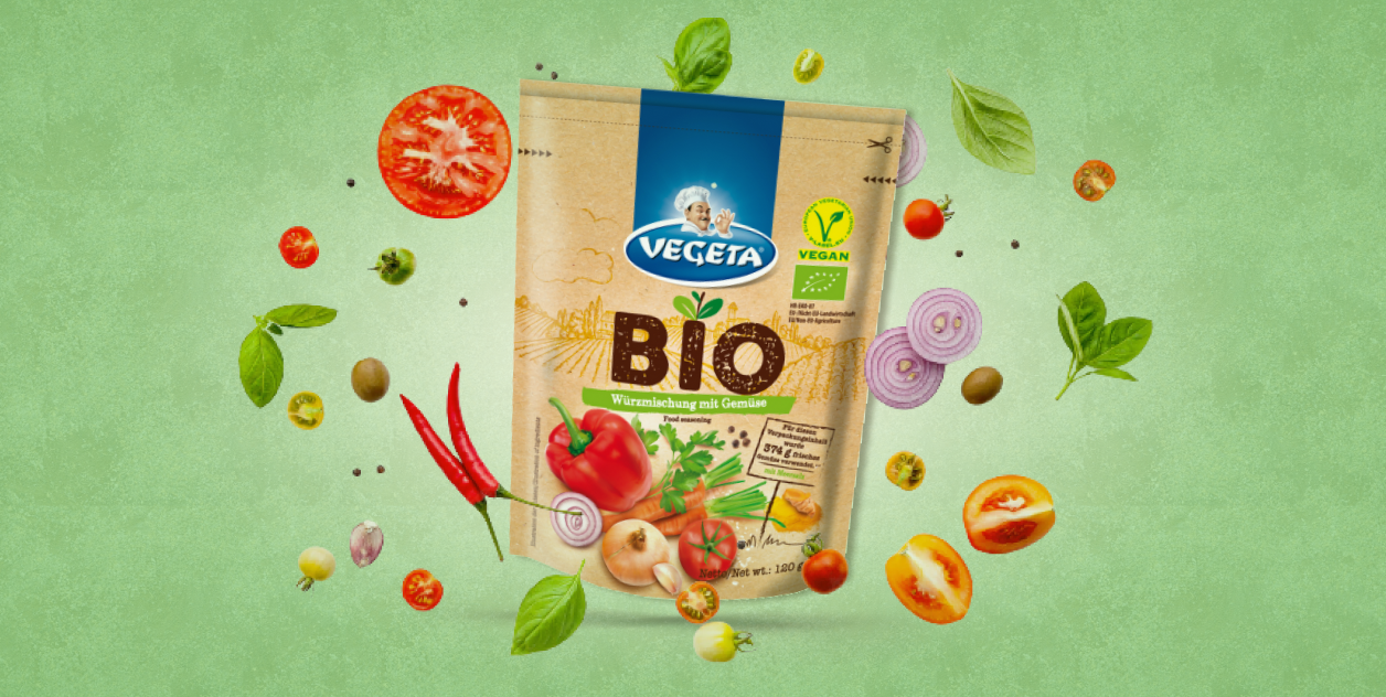 Vegeta ORGANIC представлява нашата мисия за бъдещето. Това е зелена стъпка напред към екологично чисто производство и чисти съставки. Vegeta ORGANIC съдържа повече от 10 различни органично отглеждани зеленчуци и подправки, както и морска сол, без добавена захар, глутен, лактоза, добавки или консерванти и е подходяща за веганска диета.