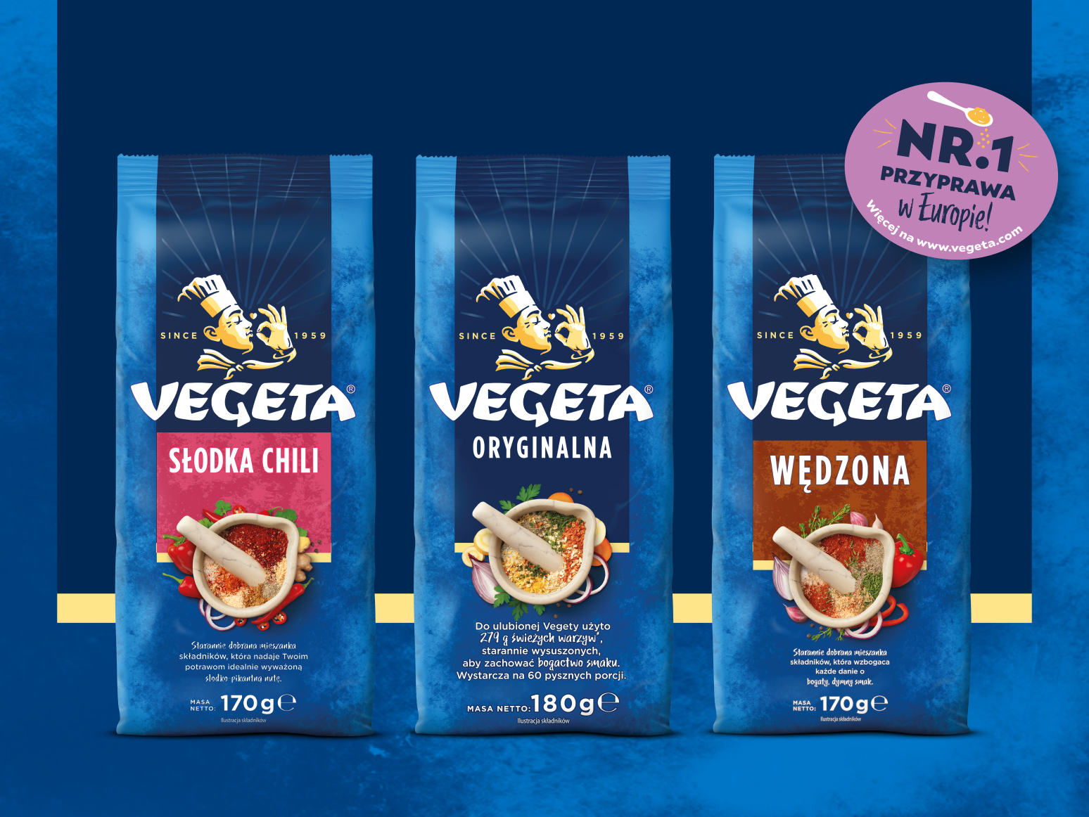 Która od teraz dostępna jest w nowej szacie graficznej. Podkreśla ona wysoką jakość oraz innowacyjność, a jednocześnie ponadczasową wartość przypraw VEGETA. Odświeżone logo i wizerunek szefa wyglądają bardziej nowocześnie i elegancko. Jest coś co jednak się nie zmieniło… to SMAK oraz to, że VEGETA inspiruje i zachęca do codziennego gotowania pozwalając wydobyć z potraw, to co najlepsze już od 1959r.